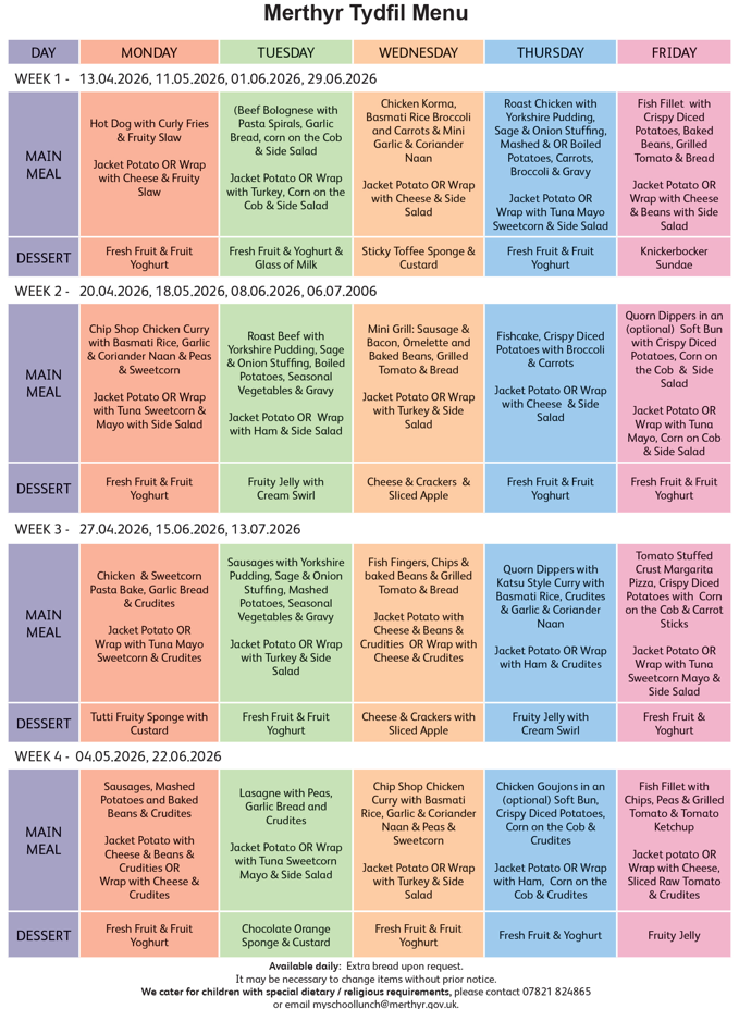Merthyr Tydfil County Borough Council School Catering Service believes that for the very best start in life children and young people need good nutrition.